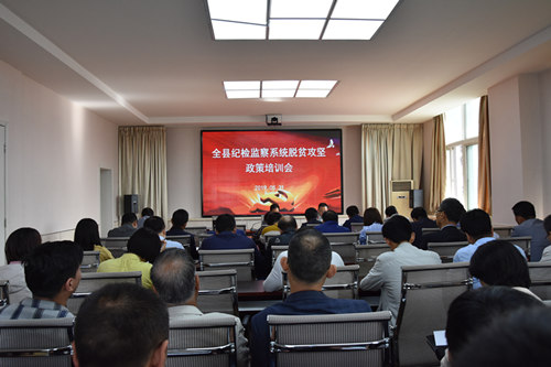 为认真贯彻落实《中央对陕西脱贫攻坚专项巡视反馈意见整改方案》要求,做好巡视整改工作,进一步提升全县纪检监察干部扶贫领域执纪监督问责工作能力,5月31日,陇县纪委监委利用一天时间召开了全县纪检监察干部脱贫攻坚政策培训会。