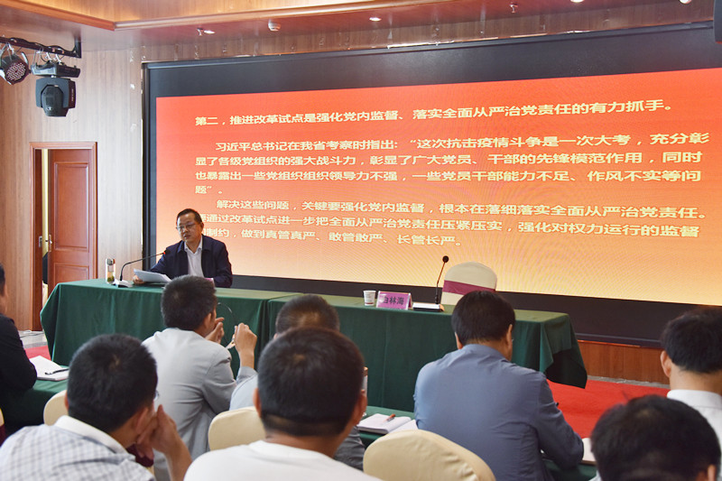 近日,陇县县委常委、县纪委书记、监委主任张宝林在全县科级领导干部学习贯彻党的十九届四中全会精神暨习近平总书记来陕考察重要讲话专题学习班上,以“积极探索创新推动“两个责任”贯通联动一体落实”为题,为全县科级以上党员领导干部就认真如何落实“两个责任”,如何抓实抓好“两个责任”贯通联动一体落实改革试点工作做了专题讲座。